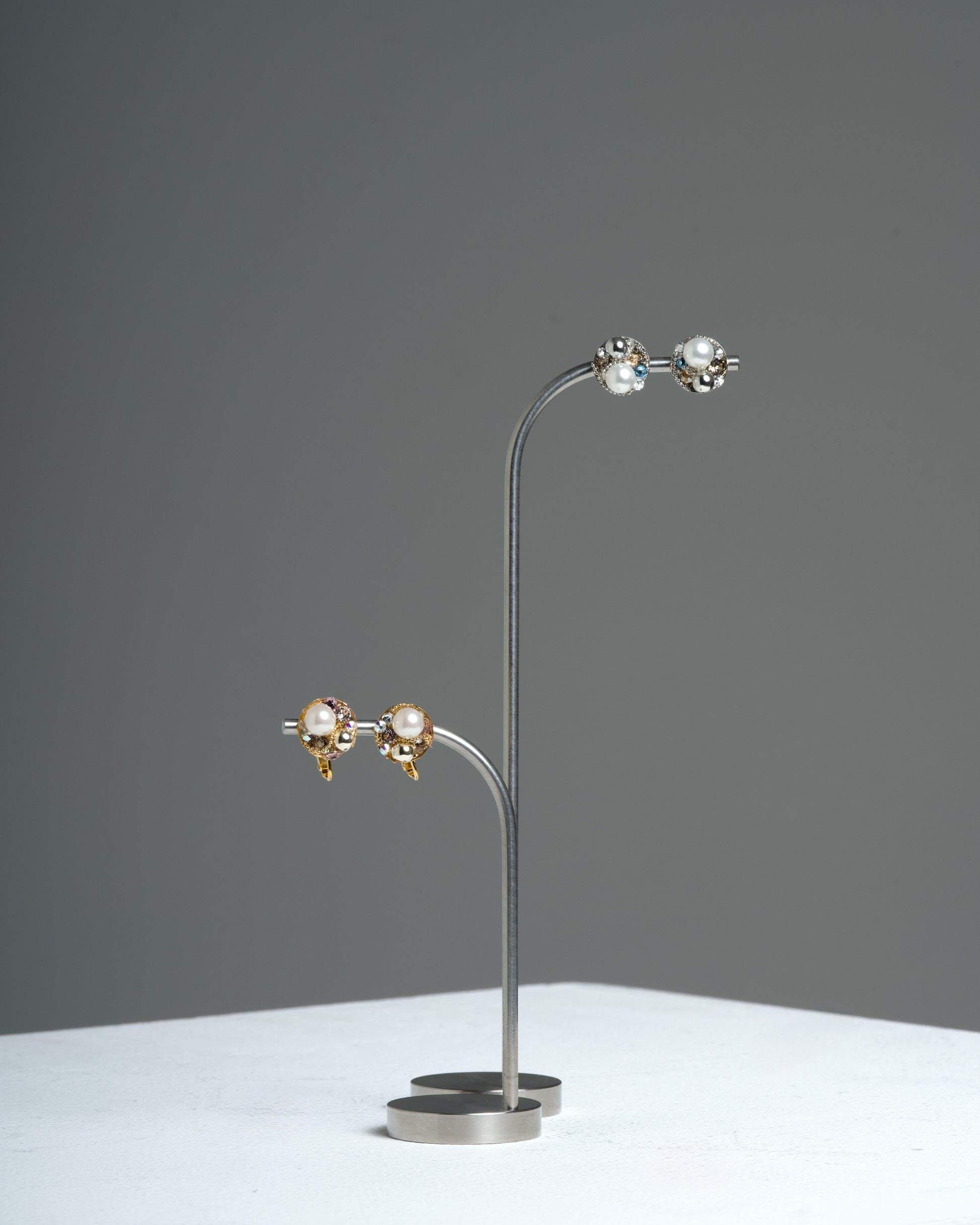 大きめのパールの周りに輝くストーンでフェイス周りの印象をパッと華やかに。
