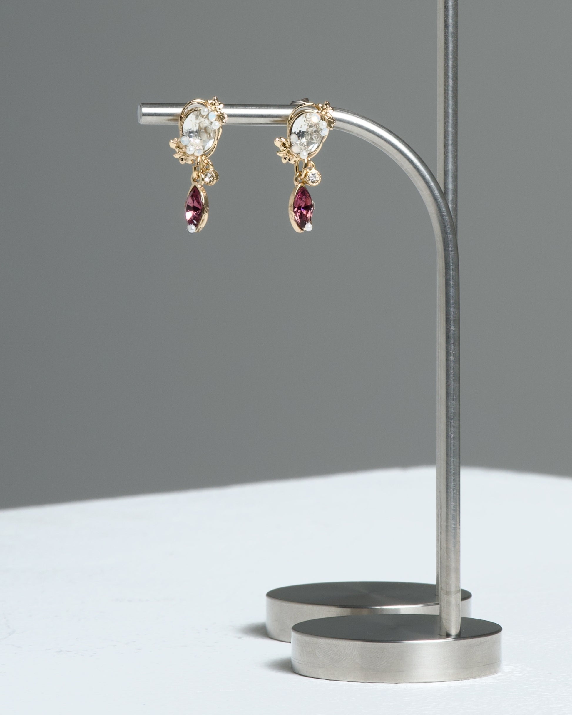 睡蓮を密かに纏った台にストーンを散りばめたアイテム。