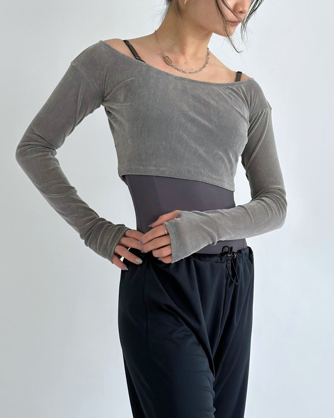 アームカバーっぽくご着用いただけるこちらのトップスは、様々なレオタードとの相性も抜群。