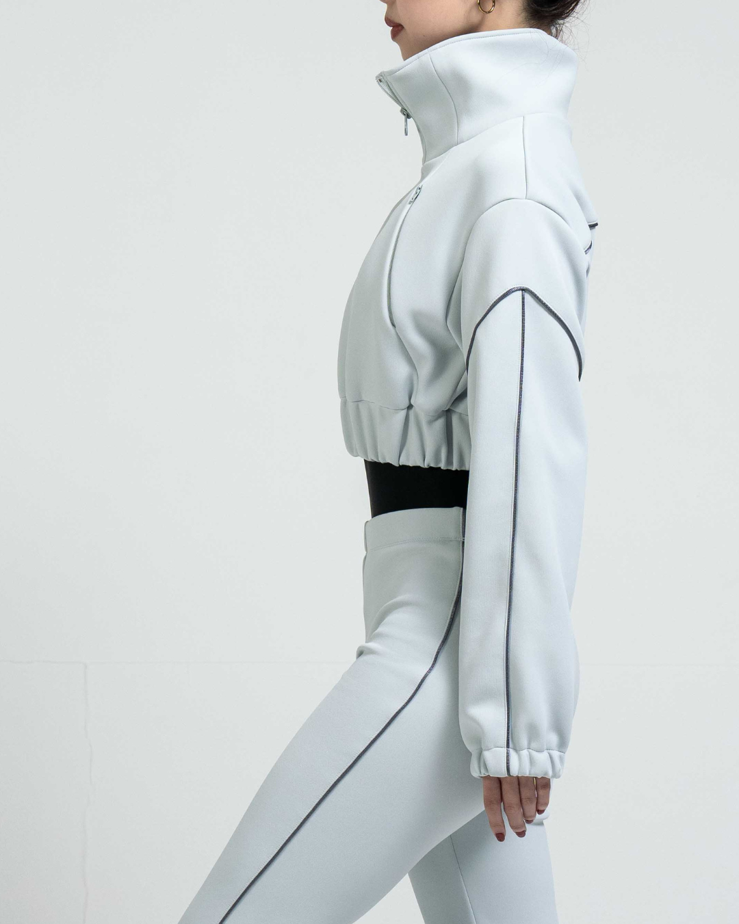 襟ぐりの高さをmm単位でギリギリまで高くしたことで、首を冷やさない且つ顔周りをスッキリさせる。