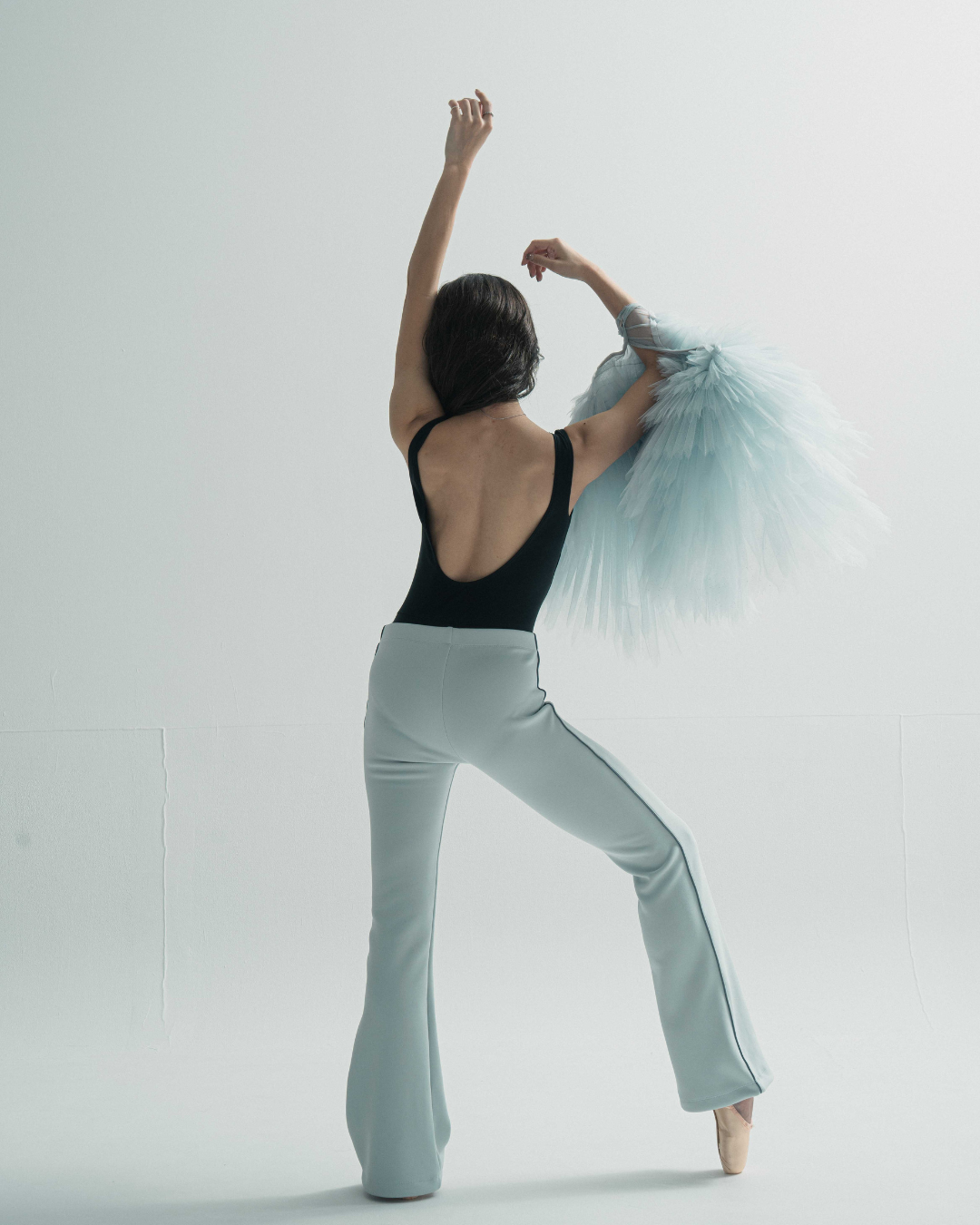 背中は広すぎず、狭すぎず、まさにダンサーにとって永遠の課題である"背中で語る"ことができる計算し尽くされた開き具合。